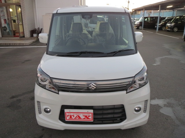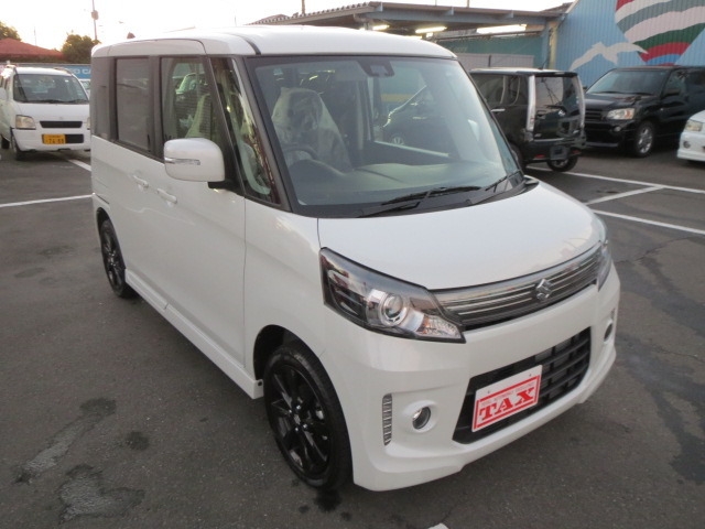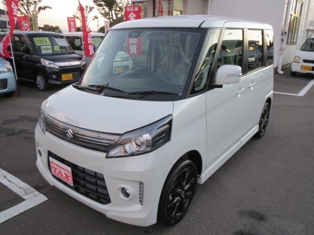 スペーシアの最上級グレードです。専用15インチアルミホイール/専用ヘッドランプ&グリル/LEDイルミ(Fバンパー)/本革巻ステアリングホイール/ピアノブラック調の高級内装/ステアリングオーディオスイッチ/6スピーカーシステム/オートライト・HID /ウインカー付電動格納ミラー。中が広くてシートを自由自在に倒したり、リアシートも前後できるので、自転車や大きい荷物を楽に積めたり、レジャー等で着替えるスペースをつくれたりできるのが良いです。後席の足元が広い。乗り込む時にも身体を曲げなくていいので楽です。ティッシュを綺麗にしまえる収納、助手席下のBOX、たくさんの小物入れ・フック、後ろの席のロールサンシェード、細かな装備に気を配ってあります。
