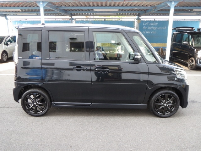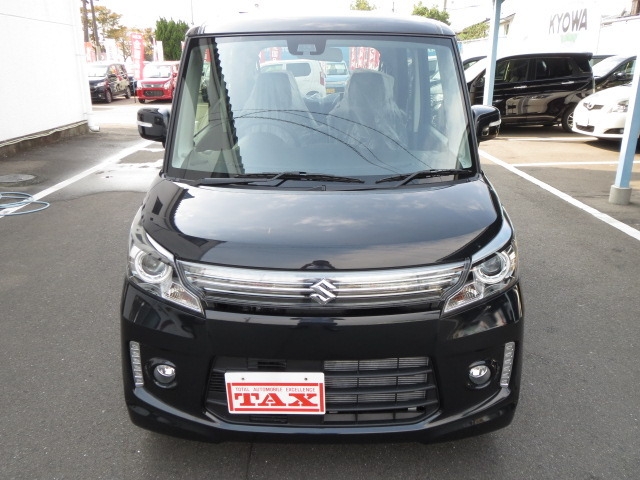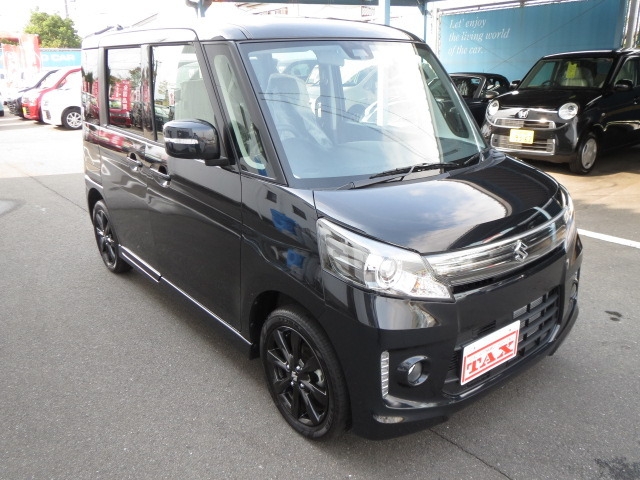 スペーシアの最上級グレードです。専用15インチアルミホイール/専用ヘッドランプ&グリル/LEDイルミ(Fバンパー)/本革巻ステアリングホイール/ピアノブラック調の高級内装/ステアリングオーディオスイッチ/6スピーカーシステム/オートライト・HID /ウインカー付電動格納ミラー。中が広くてシートを自由自在に倒したり、リアシートも前後できるので、自転車や大きい荷物を楽に積めたり、レジャー等で着替えるスペースをつくれたりできるのが良いです。後席の足元が広い。乗り込む時にも身体を曲げなくていいので楽です。ティッシュを綺麗にしまえる収納、助手席下のBOX、たくさんの小物入れ・フック、後ろの席のロールサンシェード、細かな装備に気を配ってあります。