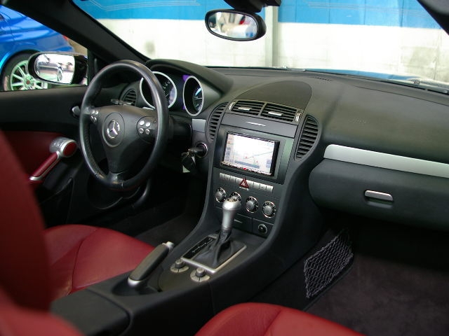 AMG純正エアロパーツ!これに19インチマッドブラックアルミが装着された魅力溢れるSLKに仕上がっております。レッドレザーでお洒落なオープンカー!
