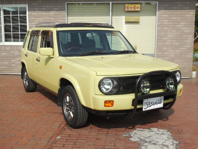 初期型 ラシーンタイプ3 純正イエローでNEWペイント!BLOOOMコンパスウッドバージョン!コンビハンドル・ウッドパネルで内装仕上げ。 タイプFルック!背面タイヤスムージング。 BLOOOMプレミアム1年保証付! 個性のあるクルマに乗りたい方! そんなオーナーさんにオススメのラシーンです! レトロな雰囲気のカクカクBODY!に加え、フロントガラスも視界良好なので、初心者の方でもラクラク運転できます。
